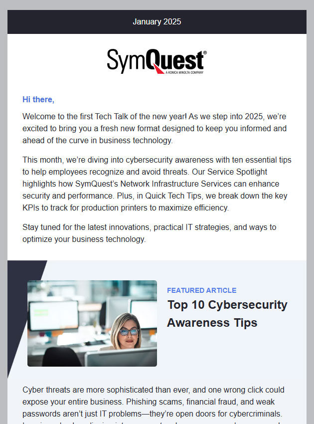 Join business leaders and IT professionals who receive exclusive insights, expert advice, and the latest trends in cybersecurity, cloud solutions, and managed IT services—straight to their inbox every month.